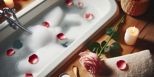 1 φλιτζάνι κατσικίσιο γάλα σκόνη 2 κουταλιές σούπας χοντρό αλάτι 1 κουταλιά σούπας άλατα Epsom (προαιρετικά) 1 ½ κουταλιά μαγειρική σόδα 1 κουταλιά σούπας αποξηραμένα τριαντάφυλλα 1 κουταλιά σούπας αποξηραμένη μέντα 30 σταγόνες αιθέριο έλαιο μέντα ή τριαντάφυλλο